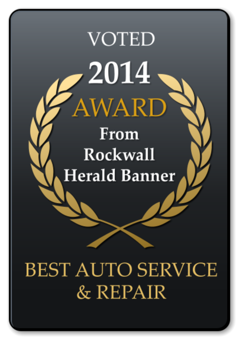 2021 AWARD  From Rockwall Herald Banner BEST AUTO SERVICE & REPAIR VOTED 2014 AWARD  From Rockwall Herald Banner BEST AUTO SERVICE & REPAIR VOTED